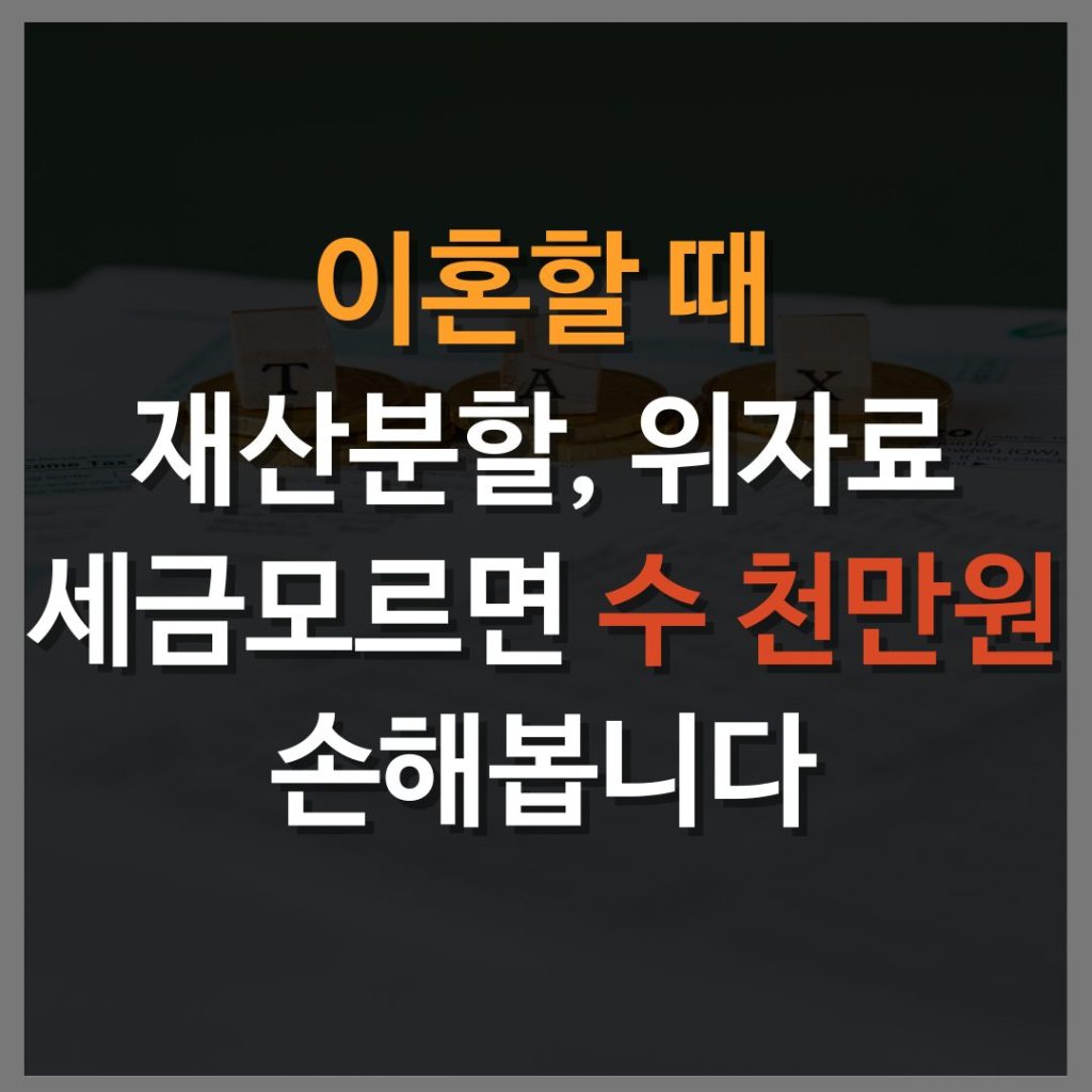 실제 상담을 하다보면 협의이혼절차, 조정이혼 절차 또는 이혼소송을 진행할 때 세금적인 부분을 고려하지 않아 큰 금액을 손해 볼 수 있는 경우들을 자주 접하게 됩니다.